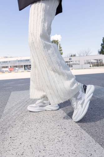 Tomaia e fodera in vitello bianco, inserti in pelle... »